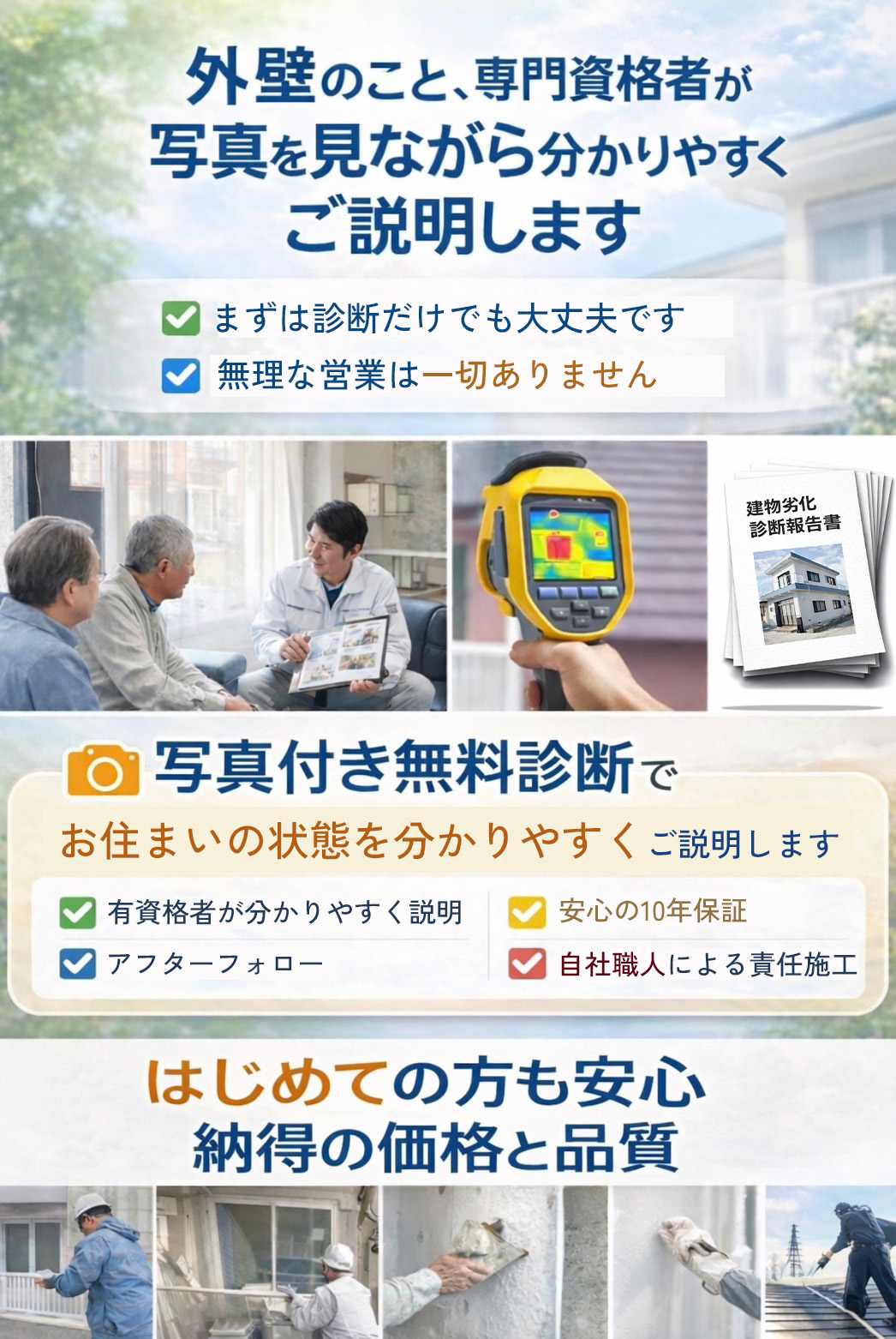 国家資格を持つスタッフが最適なプランをご提案、快適で長持ちする住環境をお届けします。